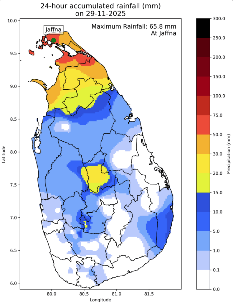 豪雨は発生から数日が経過した11月29日時点で首都圏など多くの地域で小康状態となりましたが、北部では依然として断続的な雨が続き、サイクロンの残留影響による降雨が残っています。