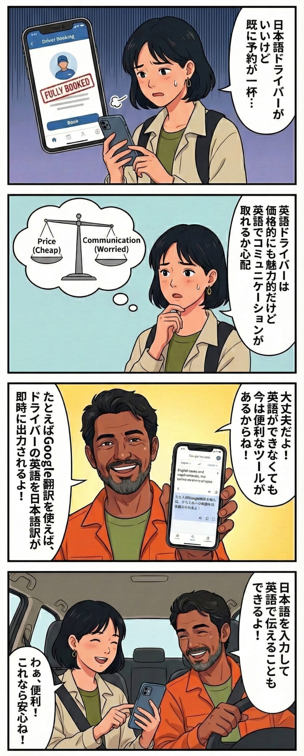 ただ、現在はテクノロジーが進歩しています。英語に自身がなくてもGoogle翻訳を使えば英語ドライバーとスムーズにコミュニケーションをとることが可能になります。