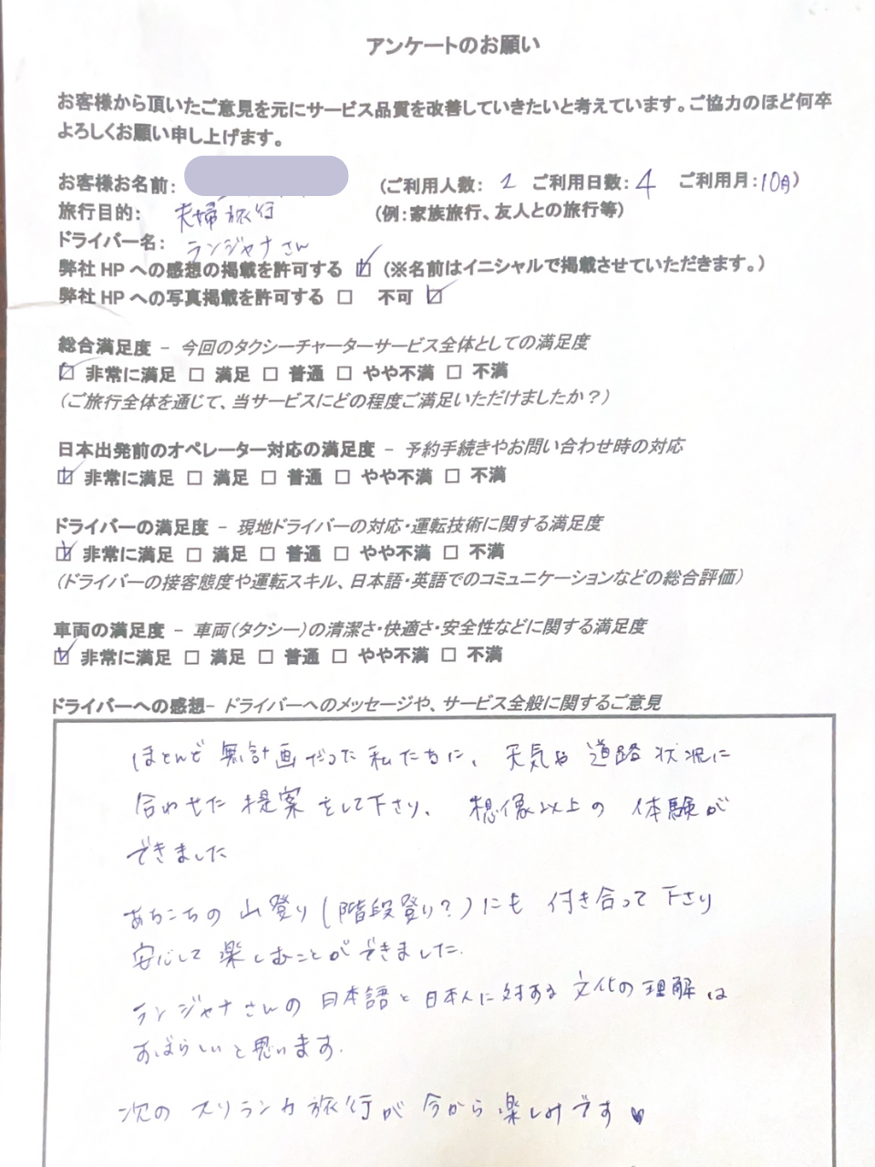 心から他の方に勧めたいですし、またスリランカに来た際はお願いしたいです。