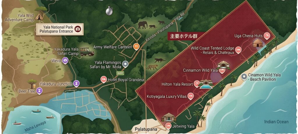 いずれのホテルも、ランカミーのタクシーチャーターで快適にアクセス可能です。ホテルの予約と合わせて、ランカミーにジープサファリの手配もご依頼いただくと、移動からサファリまでシームレスに楽しめます。