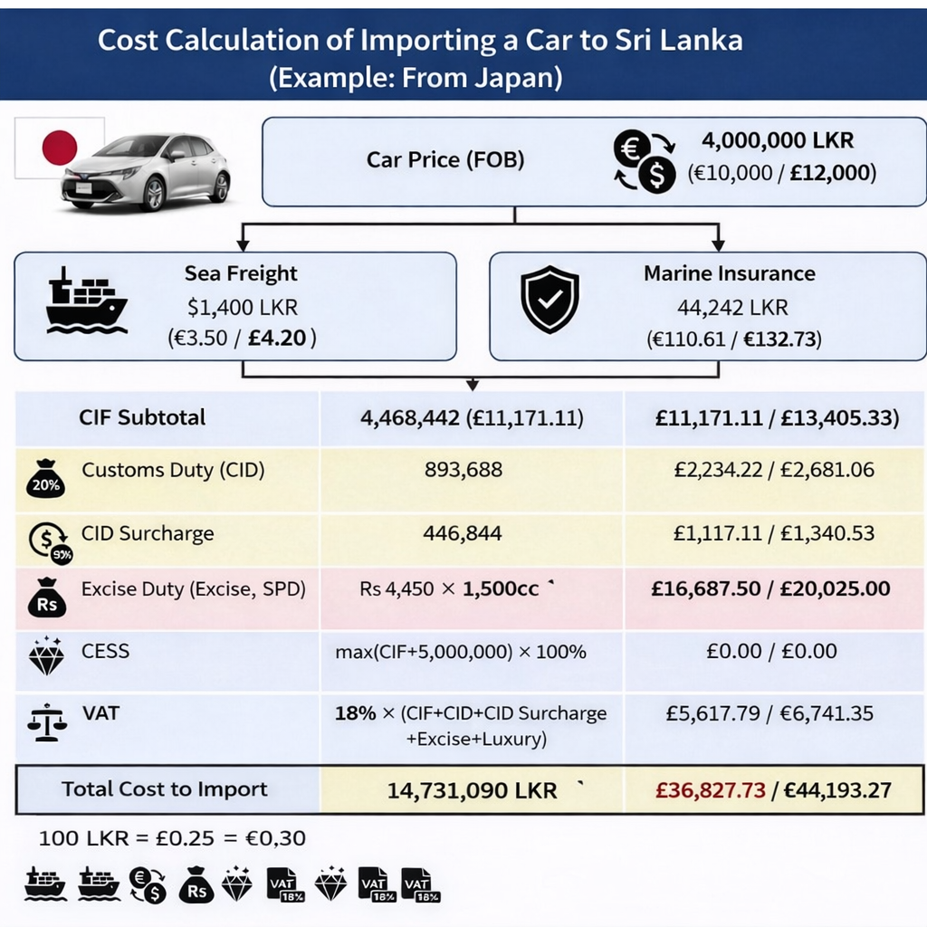 Sri Lanka primarily imports Japanese cars. When importing a £12,000 car into Sri Lanka and purchasing it, the cost rises to £36,000.